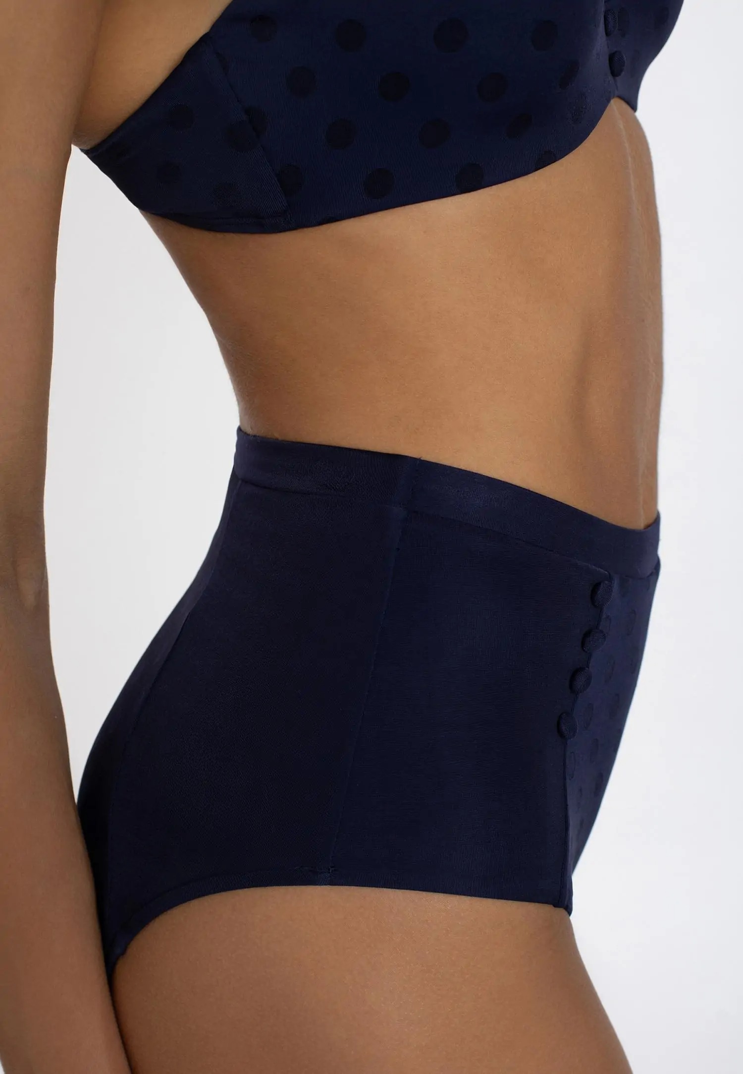 Astuge maailma, kus klassika kohtub mugavusega. BUTTON UP sarja mudelid täiustavad teie garderoobi keskkonnasõbraliku kanga ning stiilipuhaste disainidega, andes teie moerepertuaarile täiusliku lihvi. Kõrge pihaosaga ja keskmise tagaosa katvusega bikiinipüksid. Nii esi- kui tagaosal on sees siidine vooder. Toode on disainitud ja arendatud Eestis!