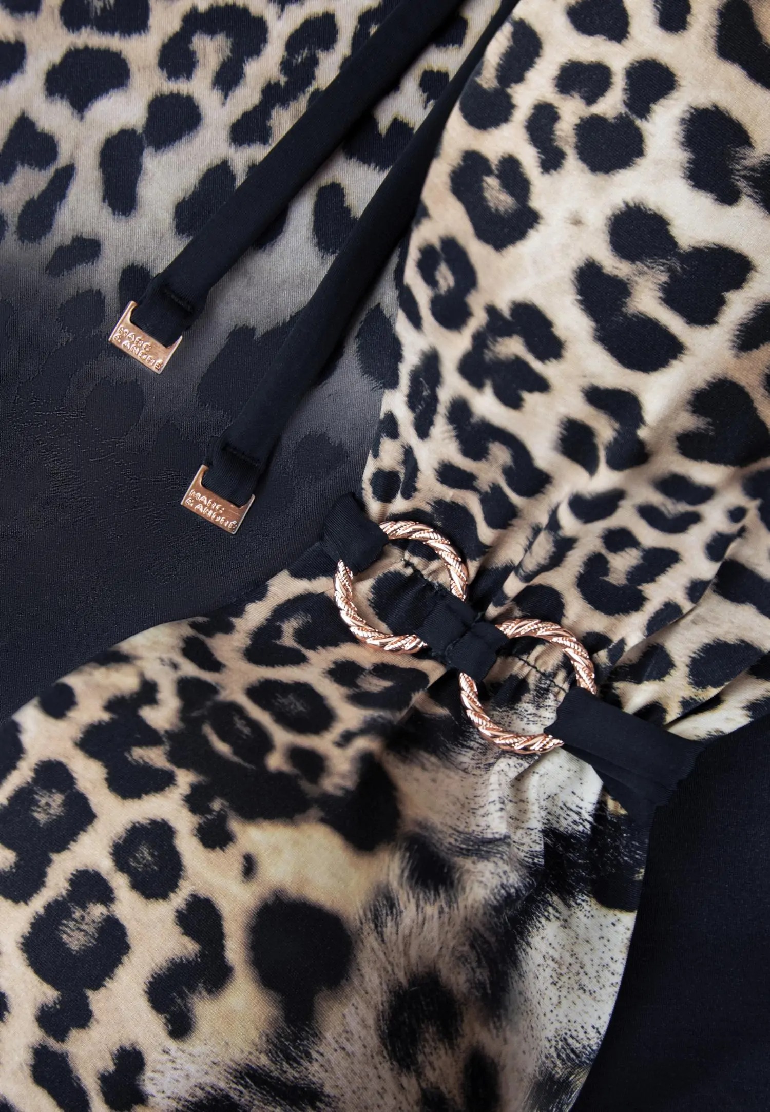 LUXURY LEO sari pakub silmailu luksusliku leopardimotiiviga. Detailse trükidisaini lummav mõju on täis kirge ja mängulisust. Kroogitud detailid ning kontrastsed paelad rõhutavad naiselikkust ning toovad teieni hooaja trendikamad lõiked. Keskmise pihakõrgusega ja keskmise jalaava katvusega klassikalised bikiinipüksid. Nii esi- kui tagaosal on sees vooder. Pükse kaunistab elegantne vööpael kuldse rõngaga. Toode on disainitud ja arendatud Eestis!