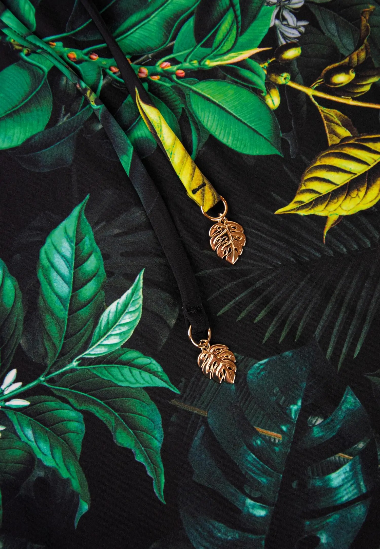 Nagu nimigi ütleb – NIGHT JUNGLE’i kangatrükk on justkui öine vihmamets, kus erinevat rohelist tooni troopilised lehed toovad tumedale taustale värskust ning elu. Heleroheline vooder ja seotavad paelad lisavad disainidesse veetlevat võlu ning mängulisust. Madalalõikelised ja napi tagaosa katvusega brazilian-stiilis bikiinipüksid. Tagadetaili jalaava serv on pehme pööratud äärega, ilma kummi ja õmbluseta. Külgedel on seotavad paelad. Toode on disainitud ja arendatud Eestis!