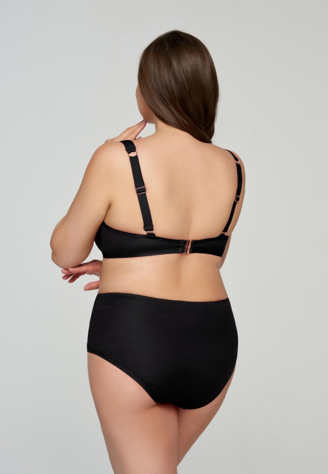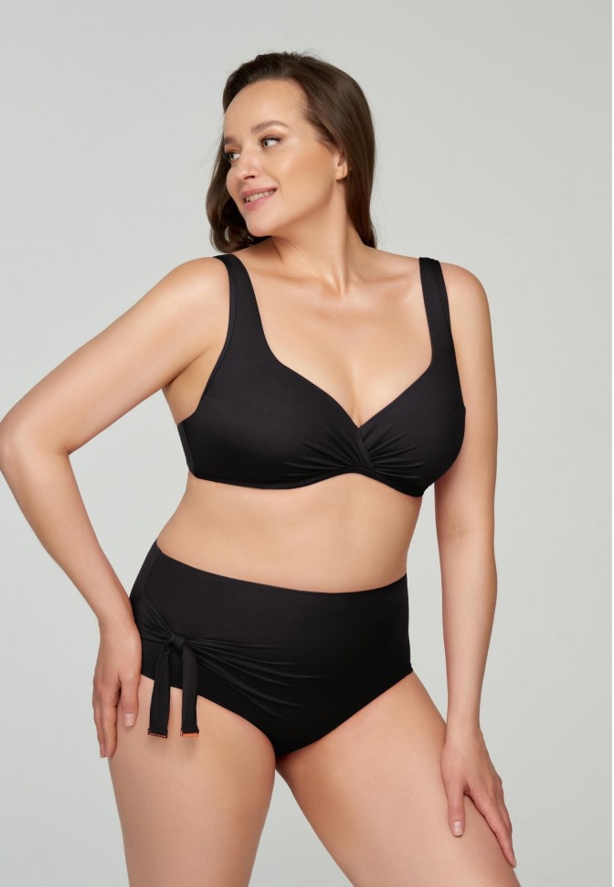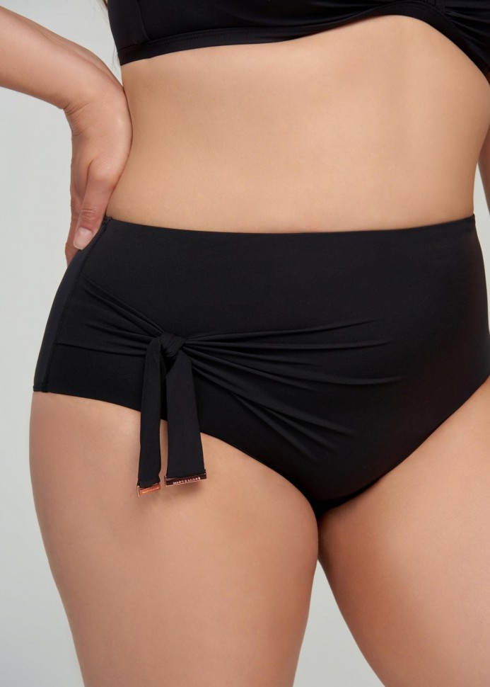 Kõrge pihakõrguse ja katvama jalaavaga bikiinipüksid, millel on esidetailil asümmeetrilised krooked ja dekoratiivne eemaldatav lipsupael. Nii esi- kui tagaosal on sees vooder. Toode on disainitud ja arendatud Eestis!