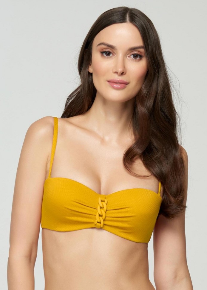 Soe ja päikeseline meekärje-struktuuriline kangas võlub “Monochrome” seerias loodussõbraliku ja ümbertöödeldud koostise ning ideaalselt kokku sobivate lamineeritud kett-aksessuaaridega. Ühetooniline kombinatsioon mängib tekstuuride, voltide ja vormidega ning seob need kauniks ning detailseks tervikuks. Kvaliteetne Lycra® kiud annab toodetele suurema vastupidavuse ja pikema kasutusaja. Vormitud korvide ja tugikaartega balconette-stiilis bikiinitopp. Push-up padjad on seest eemaldatavad. Reguleeritavad ja eemaldatavad õlapaelad. Seljaosal on klõpsuga kinnitus. Jätkusuutlik ja keskkonnasõbralik valik: ümbertöödeldud materjalidest kangas. Toode on disainitud ja arendatud Eestis!