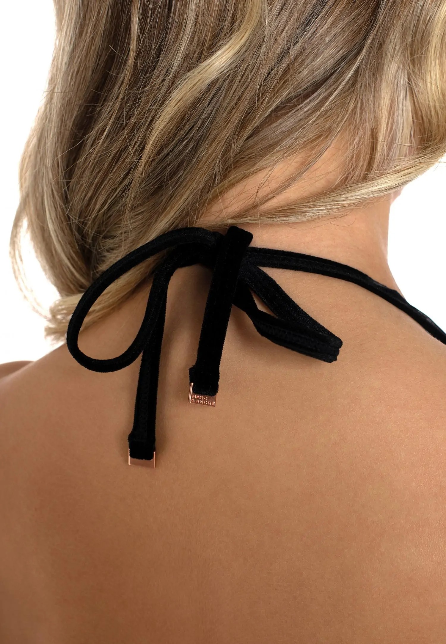 Hellitage end sametiselt pehme puudutusega! Tutvustame teile selle hooaja tipptrendi – litritega ujumisrõivad! SHIMMER POWER sari on elav näide mitmekülgsest stiilist. Koos võrgutavate läbikumavate detailide ning sametlitritega saavad need disainid lihtsa vaevaga osa teie vapustavast õhtu-look’ist. Pehme korviga kolmnurkne bikiinitopp. Topil on reguleeritava ümbermõõduga rinnaalaune elastne pael ja kaela taha seotavad õlapaelad. Toode on disainitud ja arendatud Eestis!
