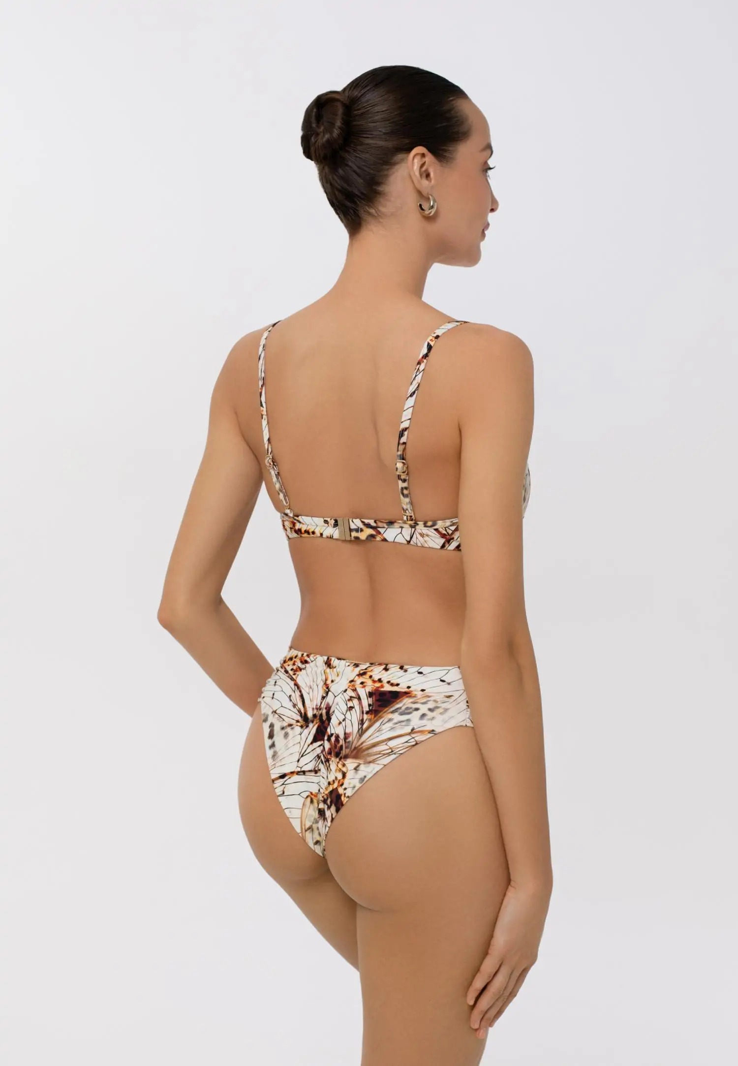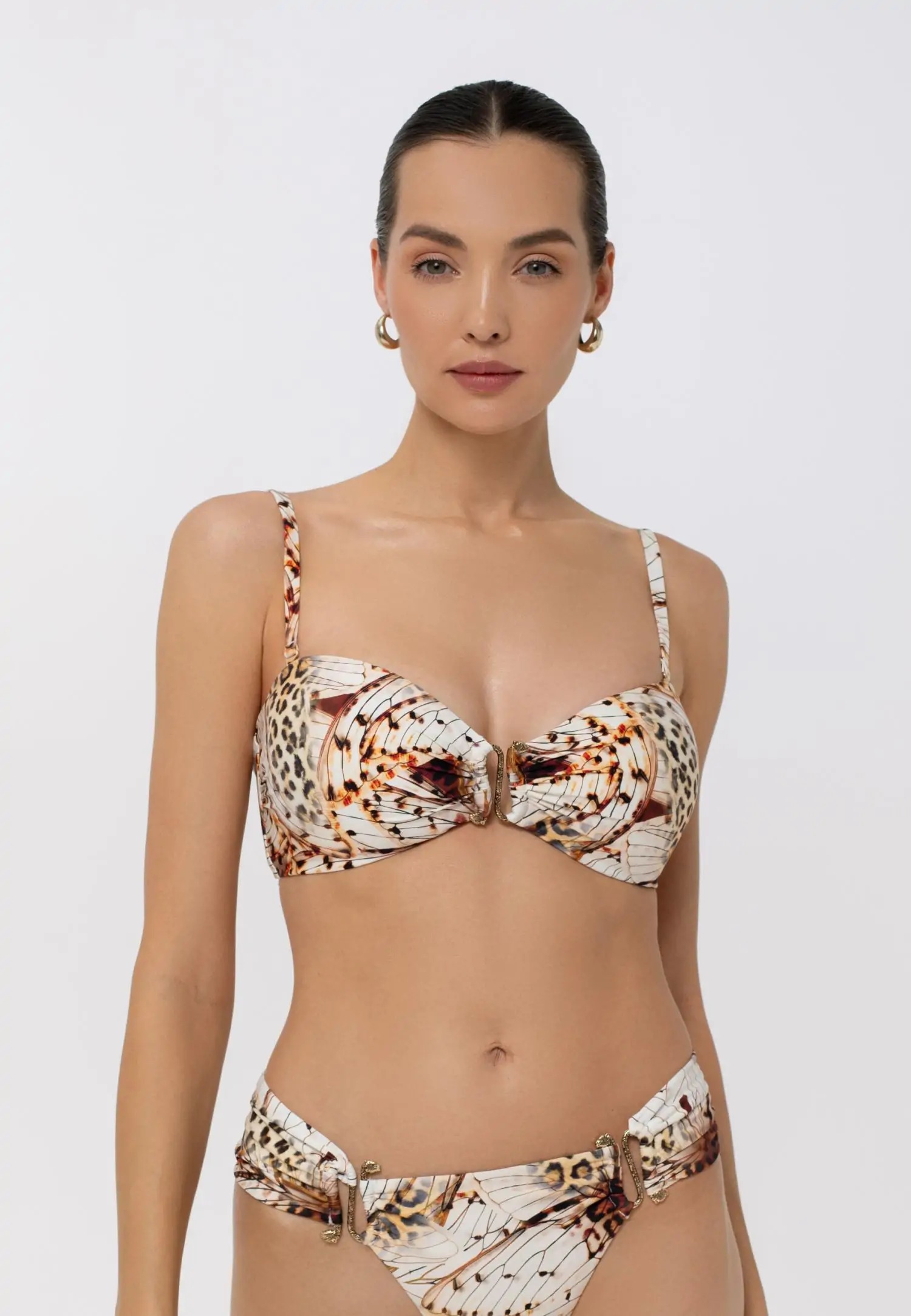 Vormitud korvidega bandoo-stiilis bikiinitopp. Ilma tugikaarteta mudel. Reguleeritavad ja eemaldatavad õlapaelad. Silikoonribad tagaosas pakuvad kindlustunde õlapaelteta kandmisel.Seljaosal niklivabast metallist kinnitus. Toode on disainitud ja arendatud Eestis!
