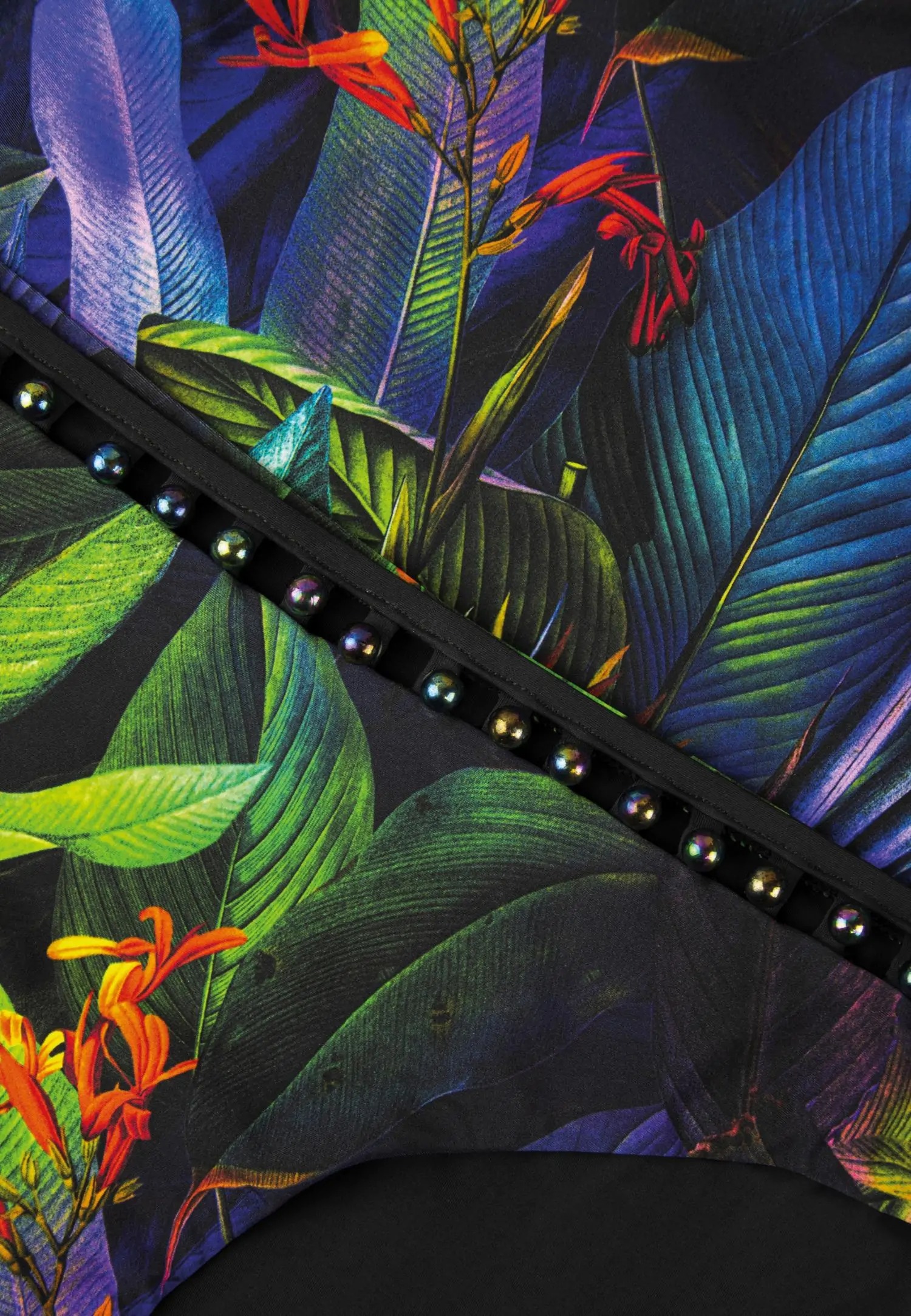 Sukelduge looduse müstika sügavustesse! TROPICAL PARADISE sari pakub täiuslikku kombinatsiooni hooaja tipphetkedest hüpnotiseerivate violetsete, roheliste ja oranžide toonidega. Aurora Borealise efektiga pärlid lisavad kogu sarjale lummava elemendi. Pilkupüüdva asümmeetrilise lõikega bikiinitopp. Rinnaosa on toestatud tugikaartega ning eemaldatava polsterdusega. Toode on disainitud ja arendatud Eestis!