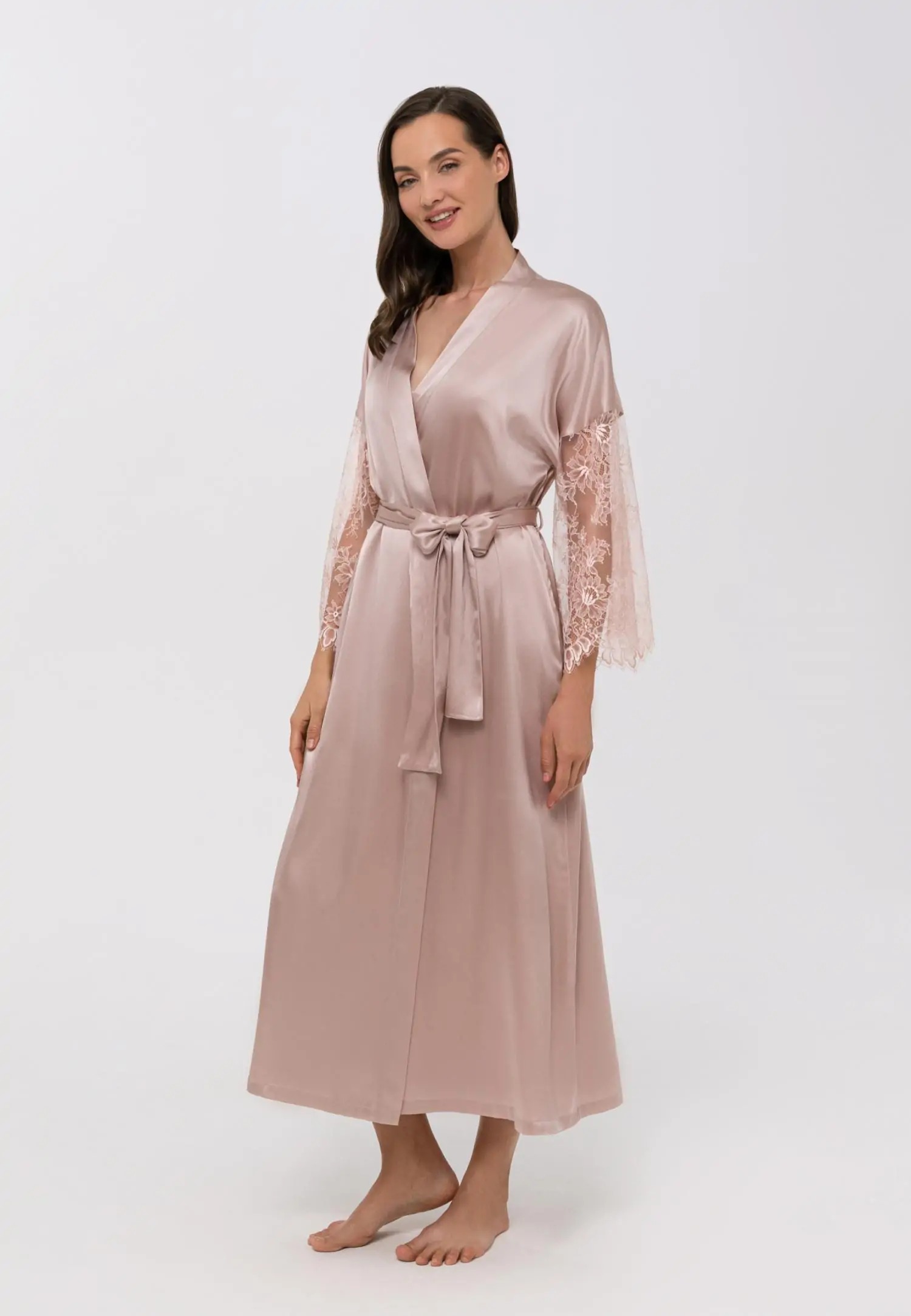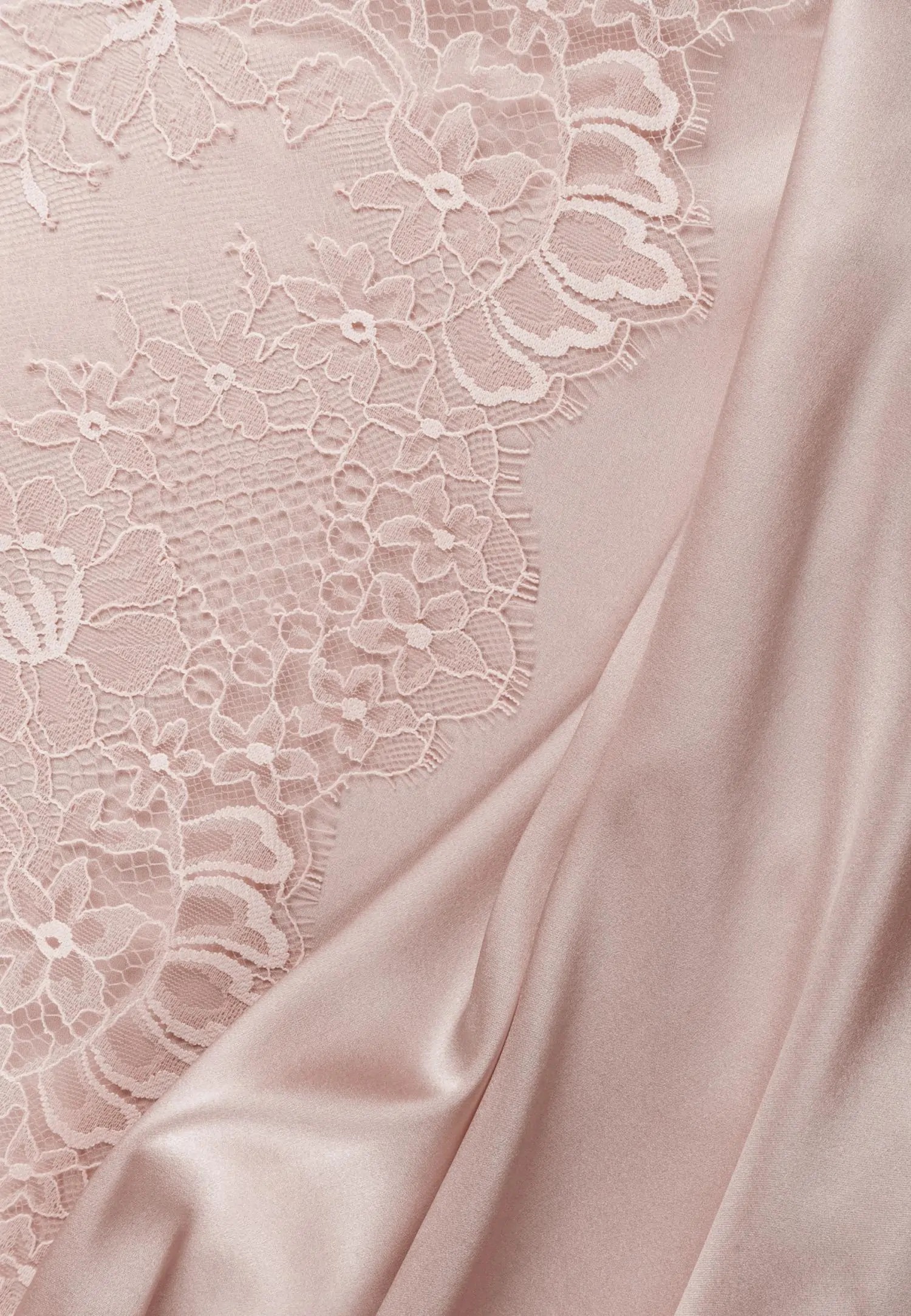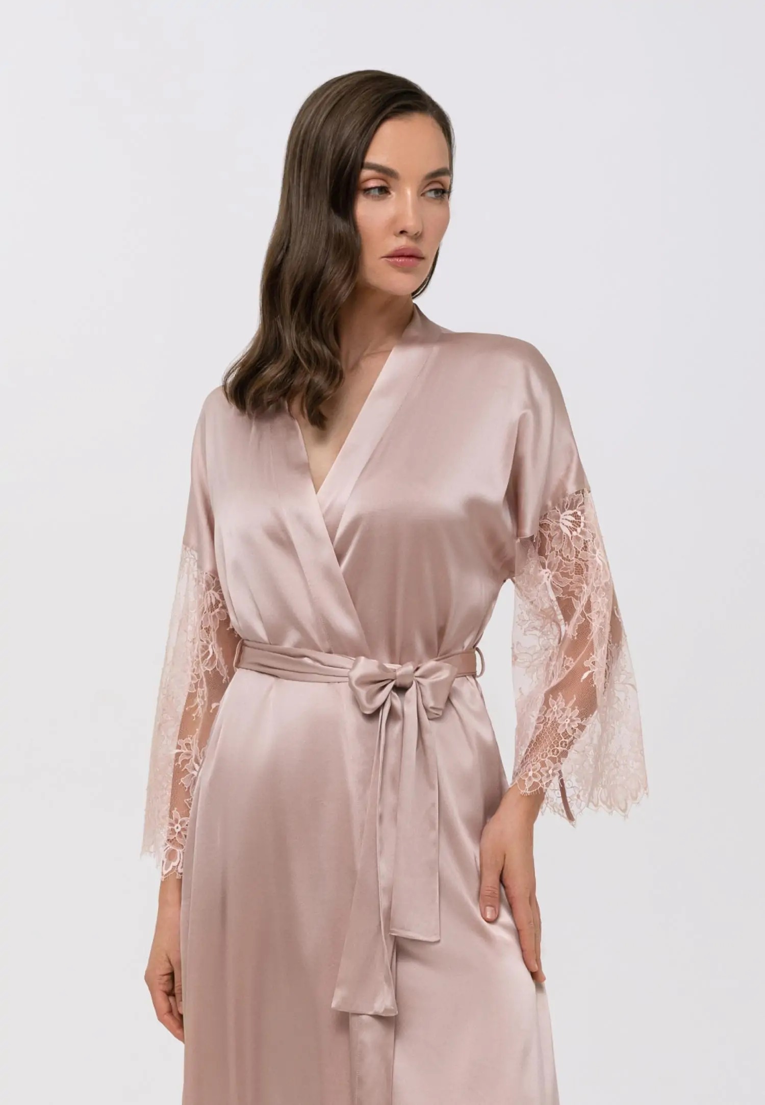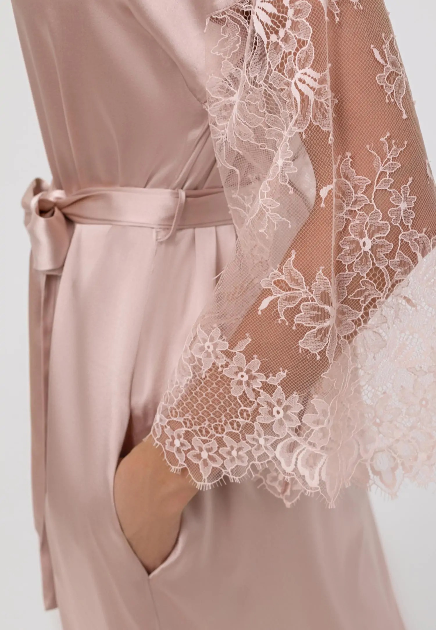 DIVINE siidist ööriiete seeria – elegantne, õhuline ja nii võrratult pehme! Pitsidest detailid koos õrnroosa pojengi tooni ja imelise läikega, mida suudab pakkuda vaid naturaalne siid, loovad vastupandamatu koosluse. Vööga siidist pikk kimono, külgedel peidetud taskud. Toode on disainitud ja arendatud Eestis!