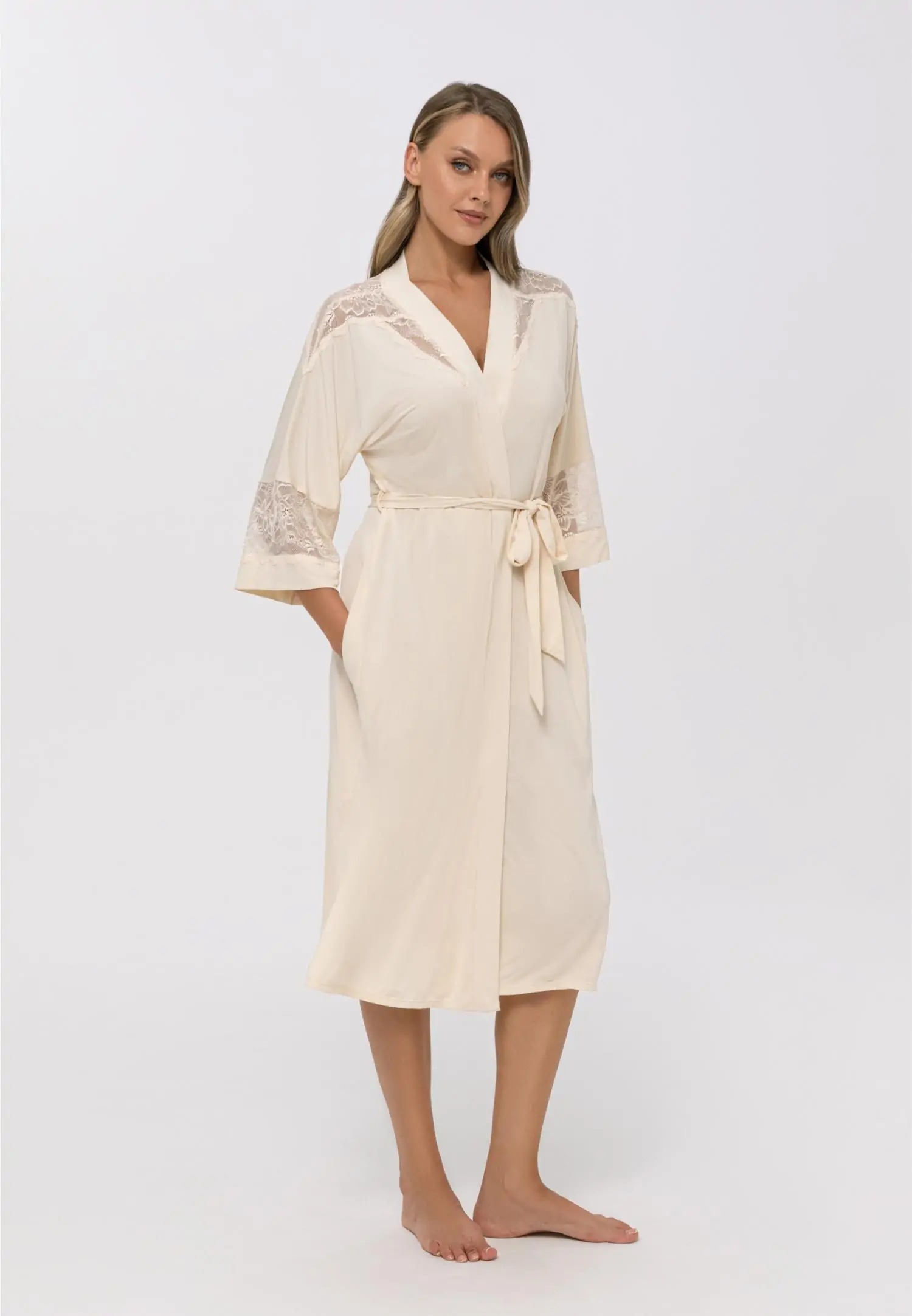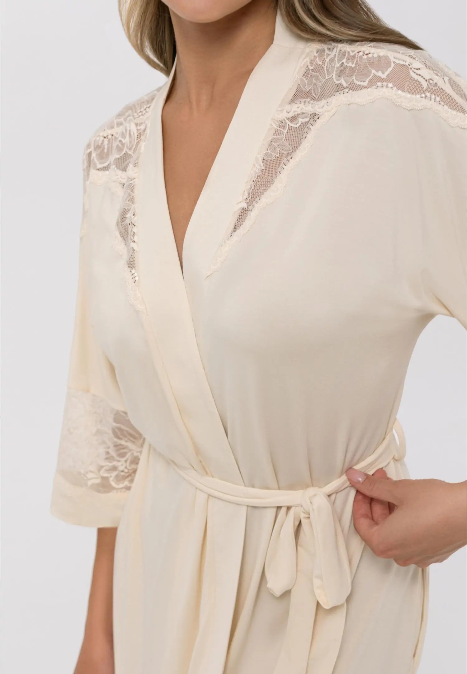Ajatu ja elegantne pitsist pesuseeria DREAMER kõige külluslikumas kreemikas värvitoonis! Armu detailidesse nagu kuldsed ääristused ja väikesed mängulised lipsukesed. Viskoosist kimono, vöö ja peidetud taskutega. Toode on disainitud ja arendatud Eestis!