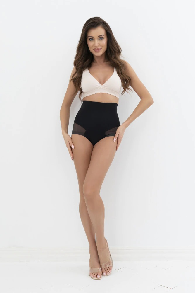 Kõrge vöökohaga korrigeerivad püksid, millel on pinguldavad ja salendavad omadused. Topelt kangaga esiosa tugevdab kõhtu salendavat funktsiooni ning püksid ei jää riiete alt nähtavale. Tagaosas on dekoratiivne, funktsionaalne, elastne tüll. Vöökohal õrn silikooniga kummipael.