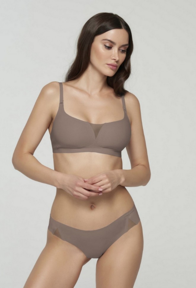 Keskmise kõrgusega Brazilian lõikega püksid. Keskmise katvusega tagaosa. Vööjoon ja sääreavad Lazer Cut töötlusega. Esiosa detailil läbikumavast võrkkangast disainielemendid.