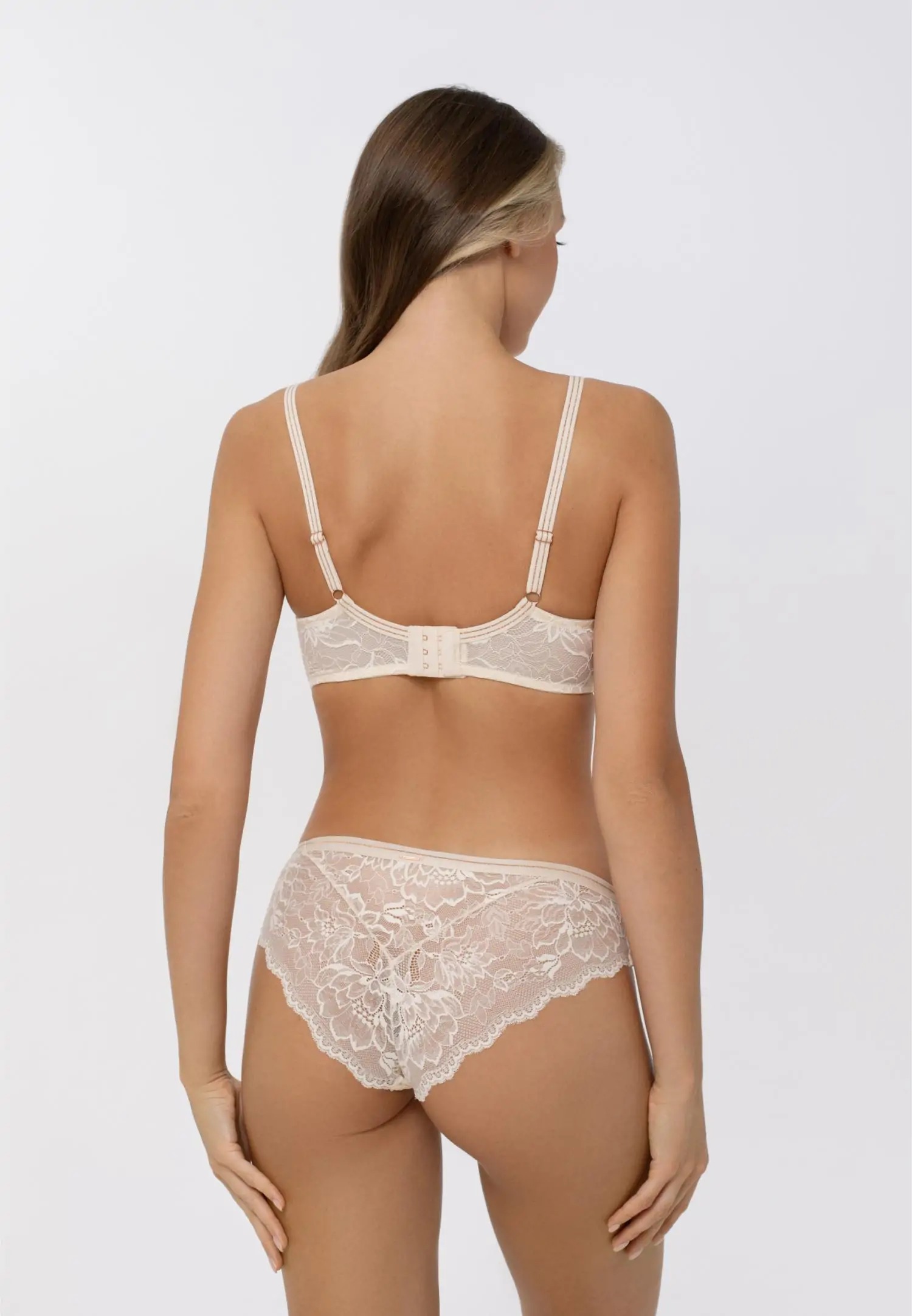 Ajatu ja elegantne pitsist pesuseeria DREAMER kõige külluslikumas kreemikas värvitoonis! Armu detailidesse nagu kuldsed ääristused ja väikesed mängulised lipsukesed. Tugikaartega pehme korviga rinnahoidja. Toode on disainitud ja arendatud Eestis!