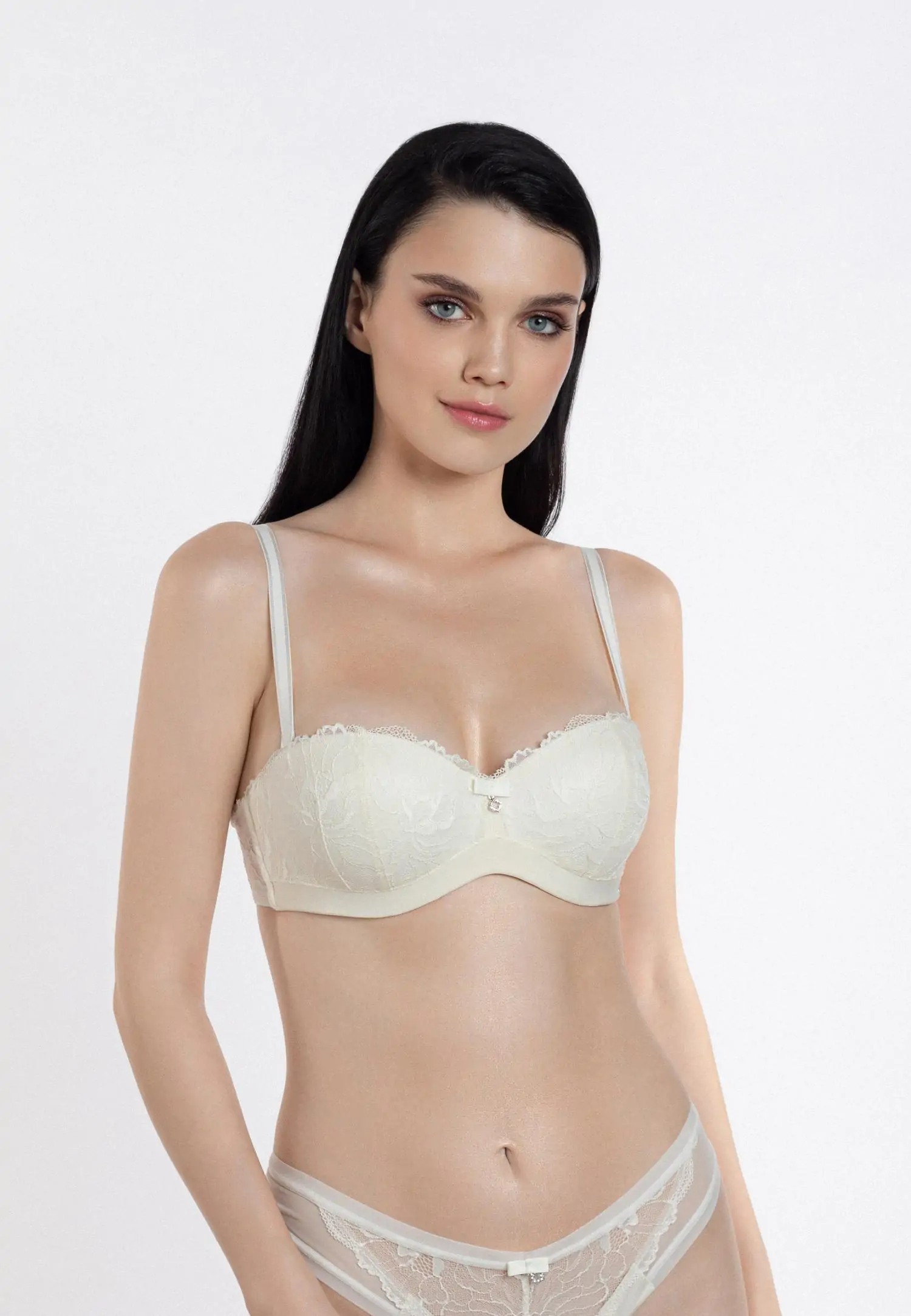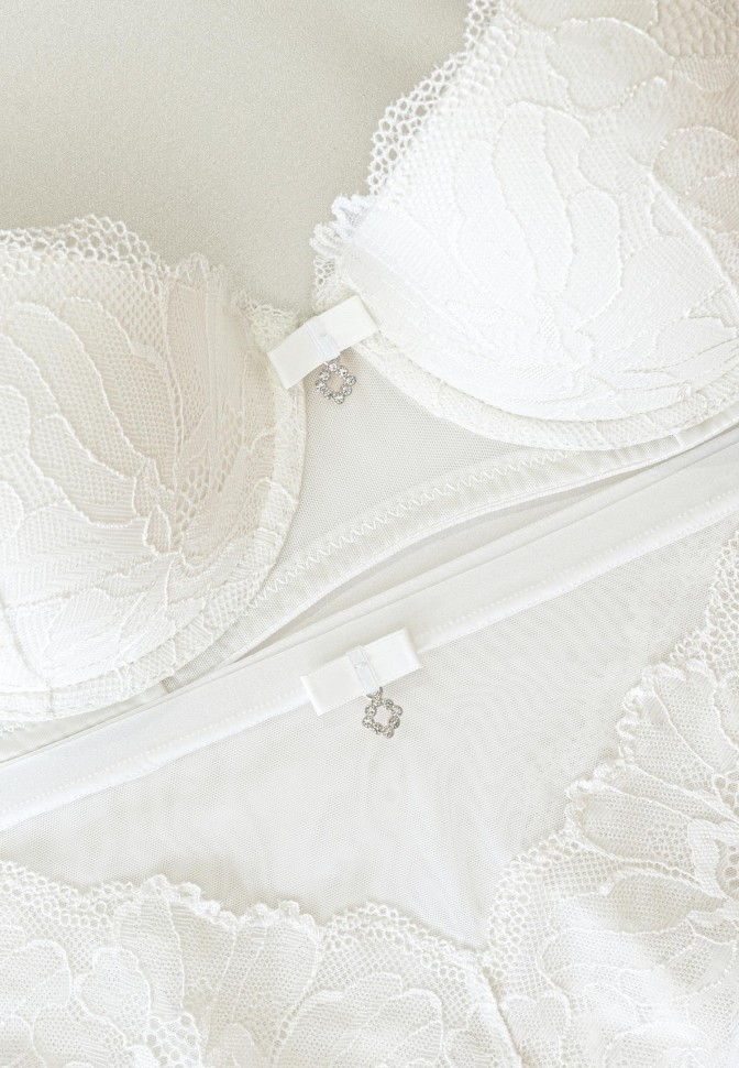 Meie MYSTIC DAHLIA kollektsioon tähistab iga naise ilu ja enesekindlust. Lase lillemotiividega kaunil naturaalsel valgel elastsel pitsil tuua esile oma võlu, lisades igale intiimsele hetkele aimu müstikast ja elegantsist. Selle täiusliku mugavuse ja elegantsi harmooniaga paneb see pesukollektsioon Sind tundma end vastupandamatult lummava ja müstilisena. Tugikaartega, vormitud korviga push up balconette rinnahoidjal on eemaldatavad õlapaelad.Kaasas silikoonist läbipaistvad õlapaelad. Toode on disainitud ja arendatud Eestis!