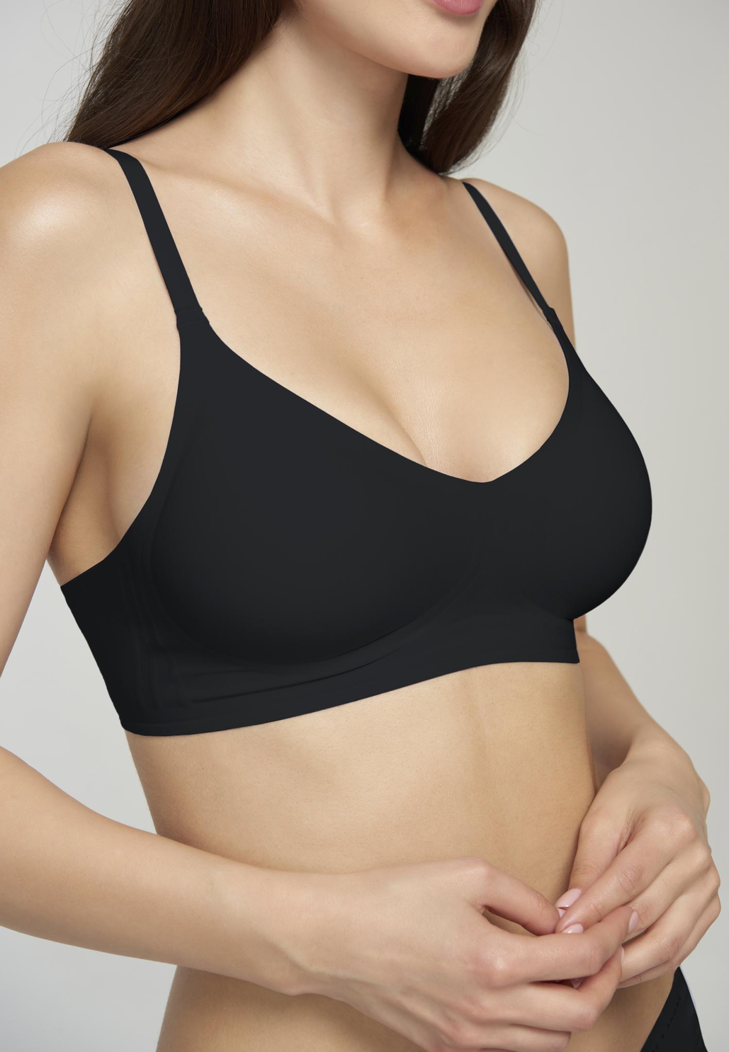 Ülimugav! Ekstreemselt kerge, sametiselt pehme ühes tükis rinnahoidja. Kangas on hingav microfiber. Rinnahoidja on võrudeta, äravõetavad padjakesed. Kahe kangakihi vahel on rinnale toestuse tagamiseks spetsiaalse tehnoloogia abil paigaldatud silikonribad. Toestus, mida sa ei tunne! Seamless „Invisible“ / jääb nähtamatuks ülerõivaste all.