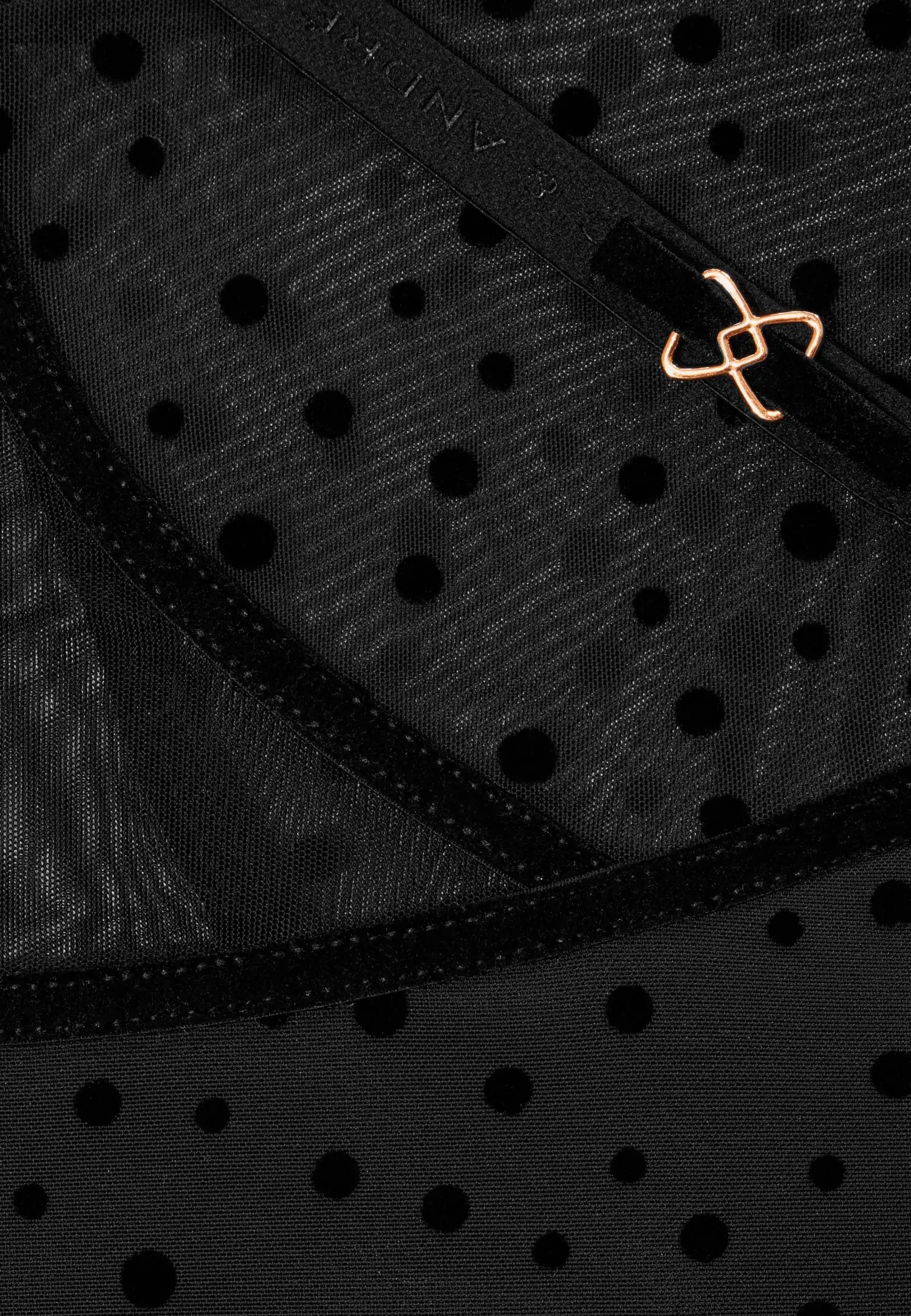 Sensuaalne SCANDALE’I pesuseeria on julge seisukoht julgest inspiratsioonist ja tormilisest kirest. Sametise mustriga võrk – klassikaline täpimotiiv, kergelt läbikumavad materjalid ja keerukad ning hästi läbimõeldud lõikelahendused. Eriline pesu eriliseks meeleoluks! Sukavöö. Toode on disainitud ja arendatud Eestis!